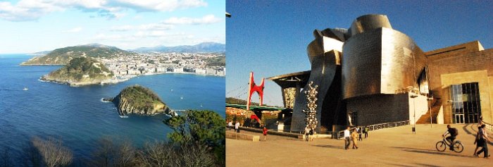 Bilbao a Donostia-San Sebastián jsou jedny z nejnavštěvovanějších měst Baskicka. Bilbao (baskicky Bilbo, oficiálně Bilbao) je především moderní město, známé díky Guggenheimovu muzeu moderního umění, které je zobrazeno na fotografii. Ještě před 20 lety bylo pouze městem průmyslovým a díky jeho rychlé proměně bylo jako první oceněno Lee Kuan Yew World City Prize, jinak přezdívanou Nobelovou cenou pro města, a kandiduje na Město designu pro rok 2014. Bilbao je rovněž tak velkým přístavem nejdůležitějším pro severní Španělsko.