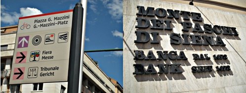 Na ulicích a v celém městě jsou informace v obou jazycích – němčině a italštině